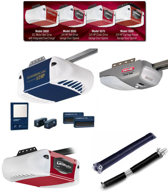 GENIE, LIFTMASTER, CRUSADER, MOORE O MATIC, LINEAR, BLUE MAX, AUTOMATIC DOORMAN, VEMCO, STANLEY, KING, SEARS, CRAFTSMAN, HOLMES, APEX, AMERICAN, CLOPAY, WINDSOR, MARTIN, CHI, AMARR, MARATHON, MILLENNIUM, WAYNE DALTON, ANORZORA, SPRINGS, OVERHEAD DOOR